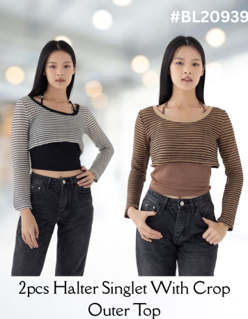 2pcs Halter Singlet With Crop Outer Top