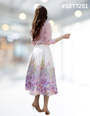 Camellia Pink Shirt n Floral Skirt Set