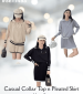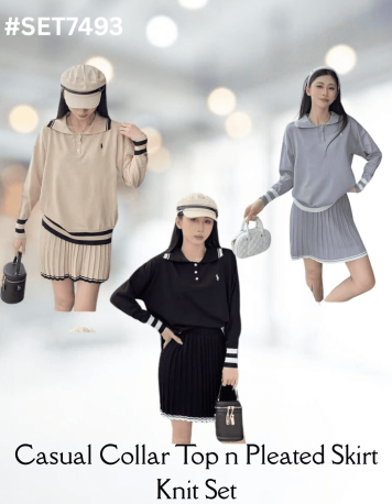 Casual Collar Top n Pleated Skirt Knit Set
