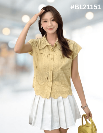 Eyelet Shirt with Crochet Collar