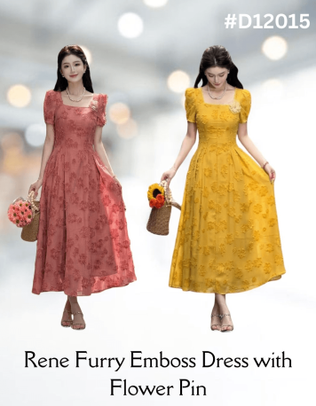 Rene Furry Emboss Dress with Flower Pin